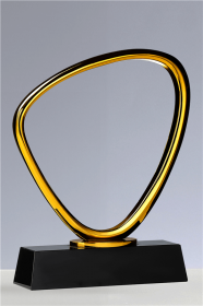 Inspirat de simbolul flăcării – energie, pasiune, transformare –, Trofeul CT 03 este alegerea ideală pentru evenimente ce celebrează excelența și creativitatea. Silueta sa dinamică, executată impecabil în rășină aurie lucioasă, este susținută de un soclu negru contrastant din sticlă, cu suprafață plană pentru personalizare.